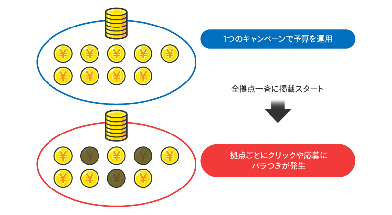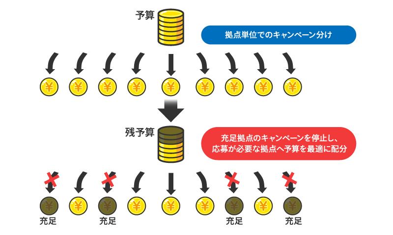 そのため、クリック数の多い都心部などの拠点に応募が偏ってしまい、拠点ごとに応募状況にバラつきが生じていたのです。
