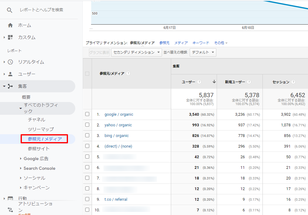 Googleアナリティクスでは、流入経路は「参照元」と表示されます。