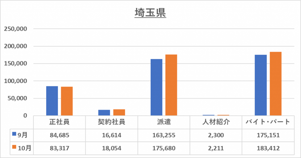 2021年9月(緊急事態宣言中)と10月(緊急事態宣言明け)を比較した首都圏の都道府県別求人件数と、雇用形態別「飲食・フード関連職」の求人件数データがこちらです。