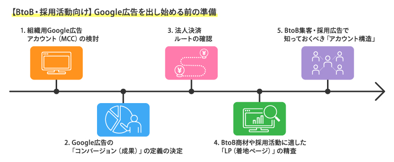 Google広告の設定画面を開く前に、組織としてスムーズに運用を継続するための「土台作り」が必要です。特にBtoB企業や採用部門では、以下のポイントを押さえておきましょう。