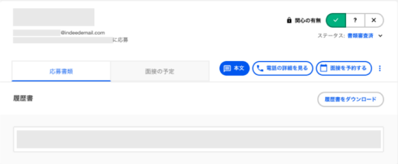 Indeedの管理画面では、応募者情報や各求人の選考状況を確認・管理することができます。