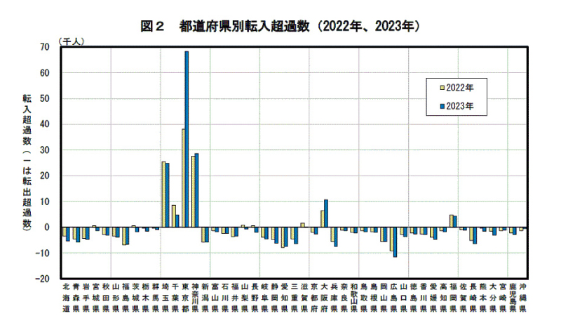 ※出典:住民基本台帳人口移動報告 2023年(令和5年)結果/総務省統計局