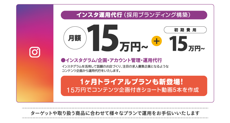 プラン内容や料金について詳しくは後述の「トラコムのSNS採用代行プラン内容」でご紹介します。
